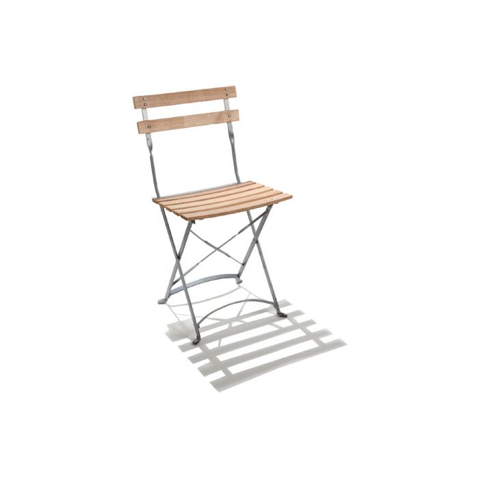La silla plegable Square en madera y metal es una de las más económicas del mercado, con una estructura flexible de acero y con asiento y respaldo en tablas delgadas de madera de haya.