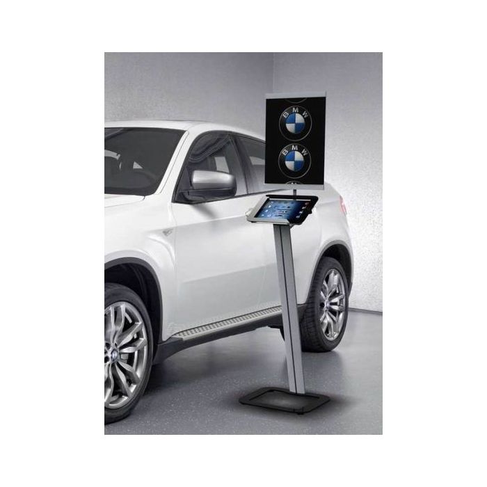 Descubra el soporte de pie para tablets Camber de diseño vanguardista perfecto para su iPad, iPad 2 y iPad 3. Fabricado con una robusta estructura de aluminio y una base de color negro, este accesorio no solo aporta estilo sino también la funcionalidad que necesita para presentaciones, puntos de venta, o simplemente para disfrutar de contenido multimedia en casa o en la oficina.
