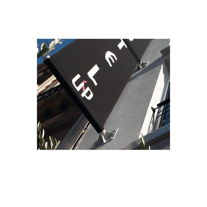 El soporte potencia mural para banderolas es una solución simple y discreta para la exposición de banderolas, ideal para aplicaciones tanto en tejido como en PVC, impresas a una o doble cara. Este soporte permite insertar fácilmente la potencia en la vaina de la banderola, proporcionando una instalación rápida y eficiente.
