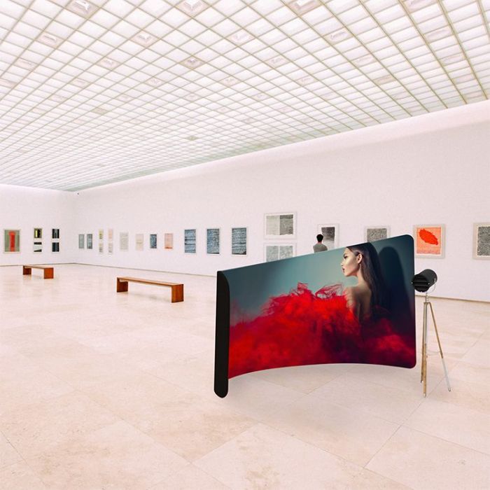 El Stand para exposiciones Wave Sunami, es una estructura tubular de aluminio compacta y ligera, que se adapta a las más diversas situaciones ya que tiene un formato especial que le da un gran impacto visual.