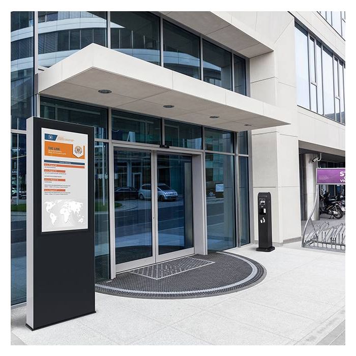 El tótem digital para exteriores está diseñado para resistir una amplia gama de condiciones ambientales. Equipado con una pantalla Samsung de uso profesional (OHF), este tótem cuenta con un avanzado sistema de control de temperatura.