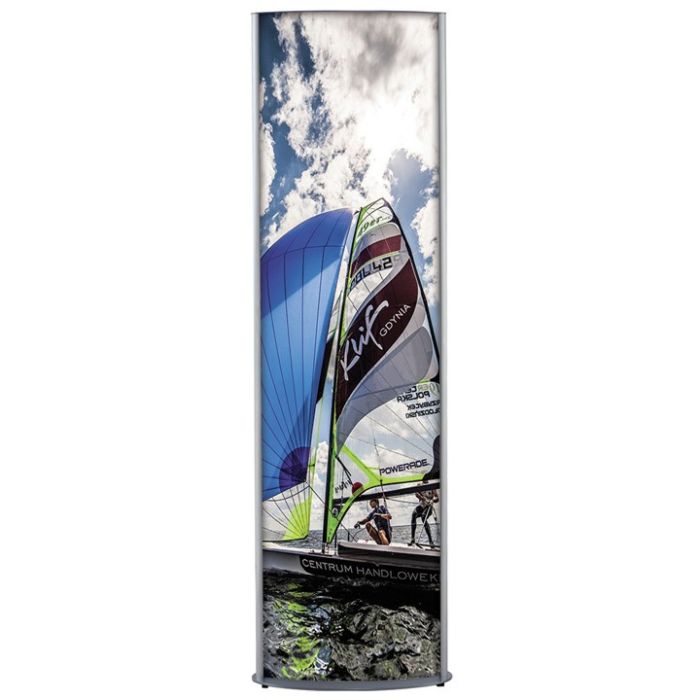 En cada lado del tótem publicitario, hay una lámina difusora acrílica opalina y una lámina frontal antirreflectante transparente, entre las que se entrelaza la impresión retroiluminada. Éstas se integran en el sistema en una configuración curvada para obtener una perspectiva panorámica, creando un medio de exposición versátil, muy agradable y extremadamente eficaz. Las cajas de luz vienen con tubos fluorescentes estándar.