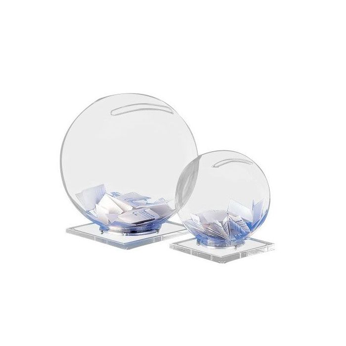 Estas urnas de metacrilato con forma de bola, son ideales para sus eventos comerciales, concursos, encuestas o cuestionarios de satisfacción, la apertura se bloquea sobre una base sin llave.
