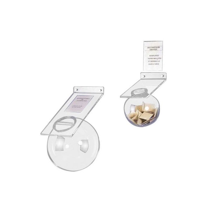 Esta urna esférica de metacrilato de pared es muy práctica para recoger las encuestas de satisfacción y es muy utilizada en hospitales, clínicas o empresas y entidades públicas.